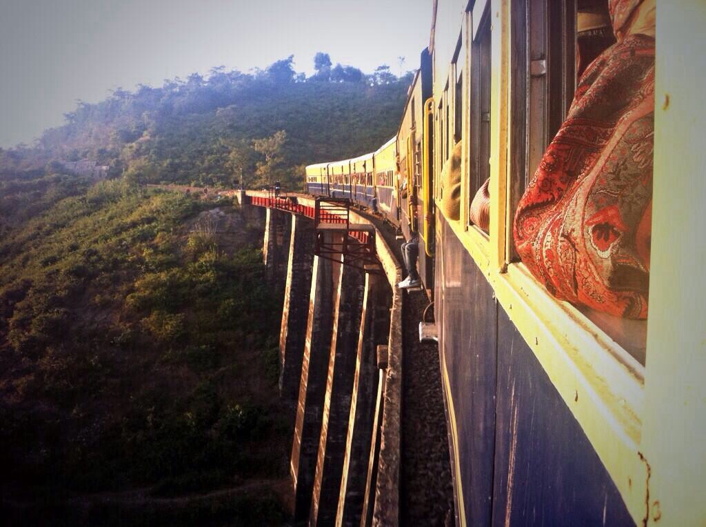 But it’s not just bottles. An Indian family friend who traveled with us for a few days, laughed at us for not throwing our rubbish on the street. ‘You’re in India now’ he joked. The same thing happened on the toy train from Pathankot to Kangra. En-route we stopped briefly enough to grab some food through the window. It was served on a polystyrene tray, which we didn’t really notice being so hungry and a little naive at that point. On we went, passing through some of the most beautiful scenery I’ve ever seen, the train taking a great curved line along the edge of hills that yawned gently down towards the wildlife sanctuary of Maharana Pratap Sagar. Trays fluttered from the windows as others finished their snack. I instead, hung my arm out of the window, dangling the tray so that the sticky sauce might run off it and I could slip it into the pocket of my backpack. The couple opposite sniggered as I fiddled around with it. Hundreds of miles away, watching the sun go down from a bridge in Rishikesh, we watched a man pull-up on a motorbike and lob plastic bags of rubbish in to the ‘holy’ Ganj. At the Himalayan foothills, cows lazily munched on rubbish a short walk from the Dalai Lama’s residence. Every train-line, every road, every river has a plastic residue.